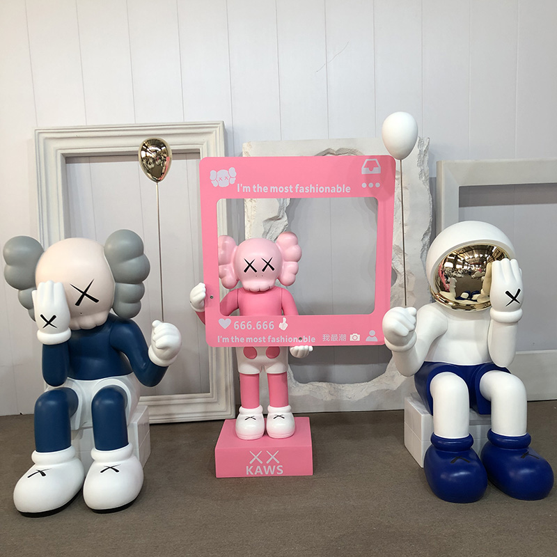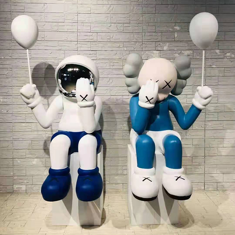 轻奢气球kaws大摆件电镀卡通太空人暴力熊雕塑公仔酒吧商铺装饰