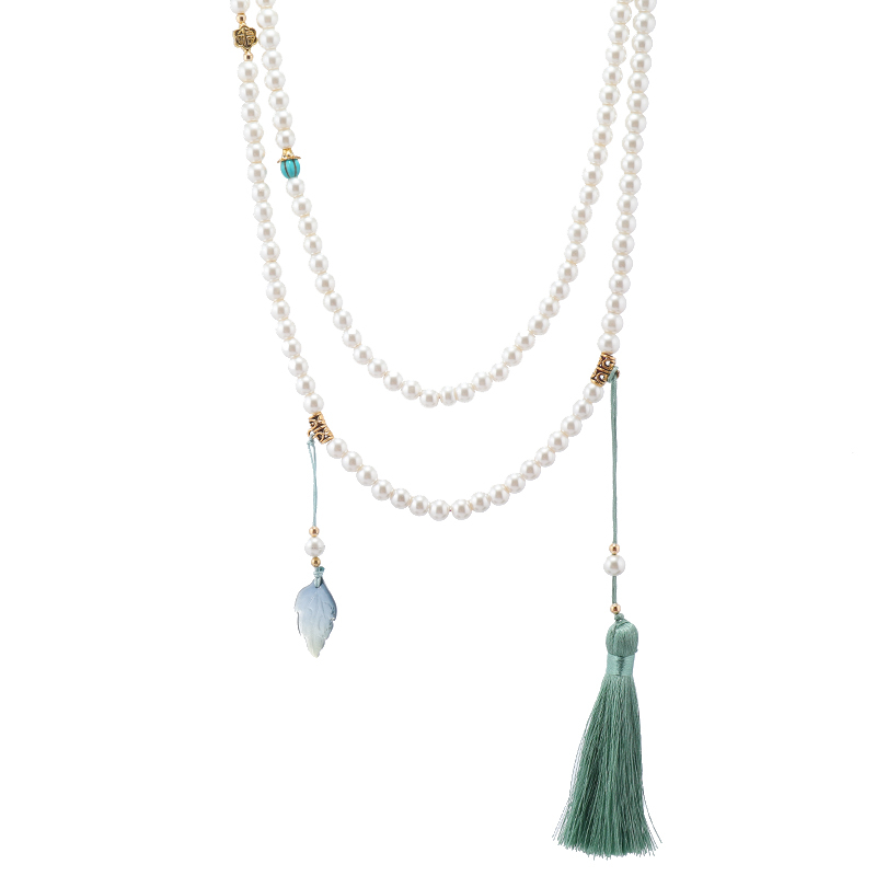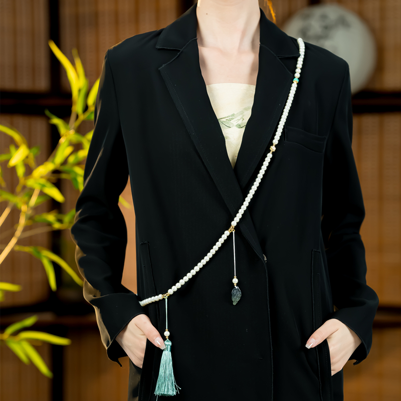 新中式国风珍珠流苏项链高级感复古气质长款斜挎毛衣链旗袍配饰女