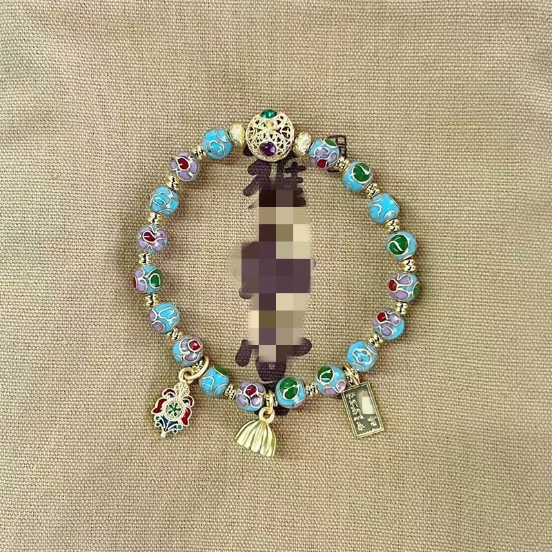 北京湖蓝色景泰蓝手串莲蓬掐丝珐琅繁花系金箔潘家园景区手链饰品