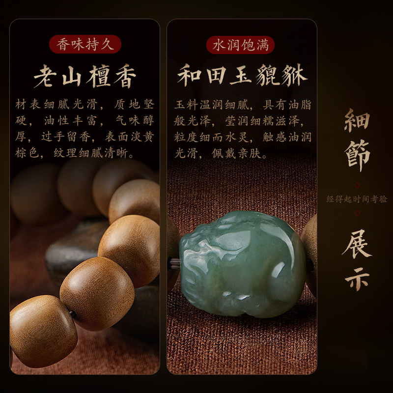 老山檀手串和田玉貔貅手链文玩佛珠盘玩念珠檀香木古玩转运珠男女