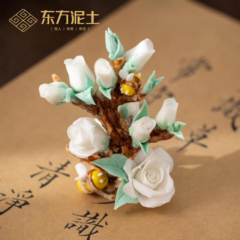 姹紫嫣红手工陶瓷精美瓷花小摆件客厅鱼缸内饰造景沉底沉水装饰品