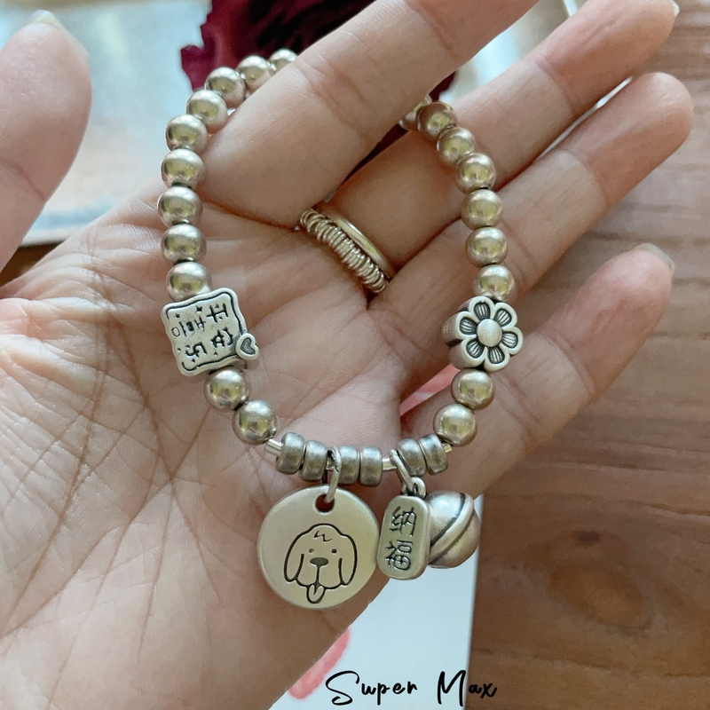 纯银s925足银S999原创小众设计复古银珠生肖平安喜乐铃铛手链