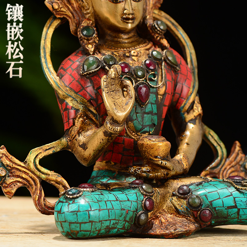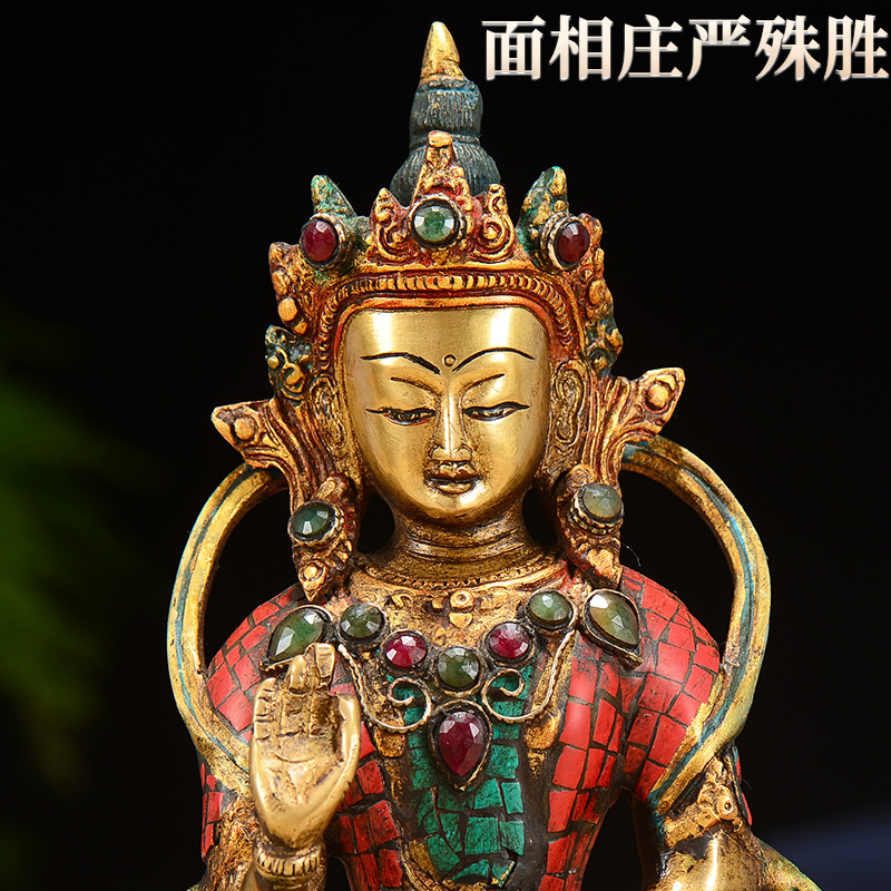 欧斯特 释迦牟尼过去 尼泊尔手工做旧镶松石7寸居家客厅燃灯铜像