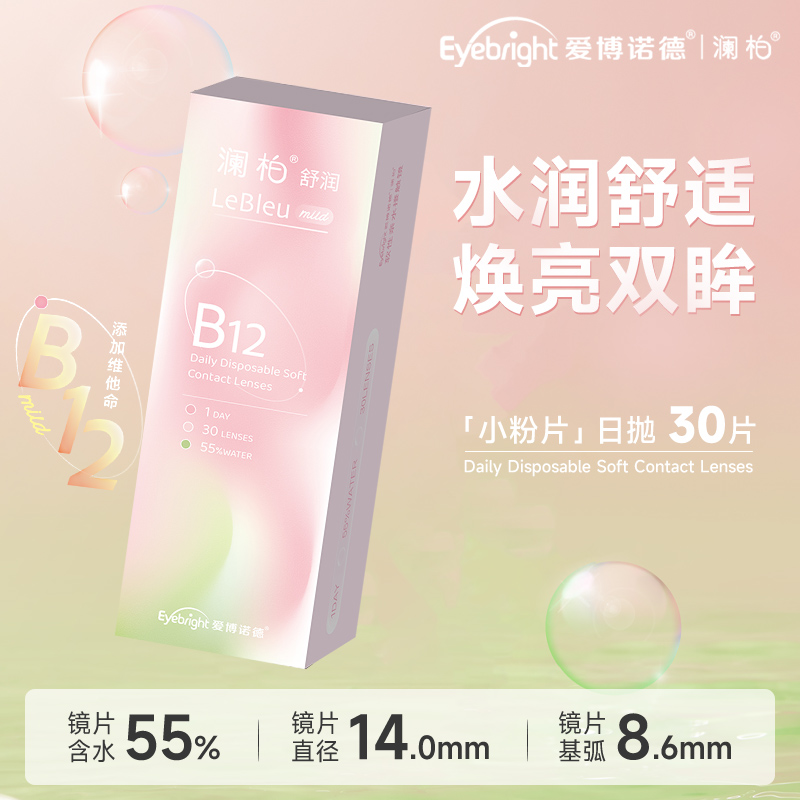 澜柏舒润小粉片日抛30片B12近视隐形眼镜透明一次性水润官方正品