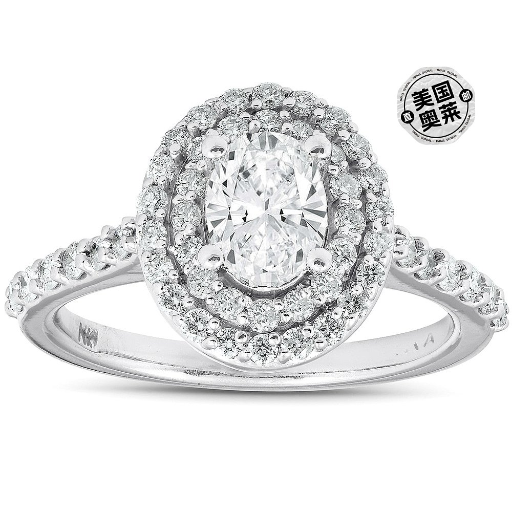 自营 pompeii31 3/4 克拉椭圆形钻石双光环订婚戒指 14k 白金 - 1