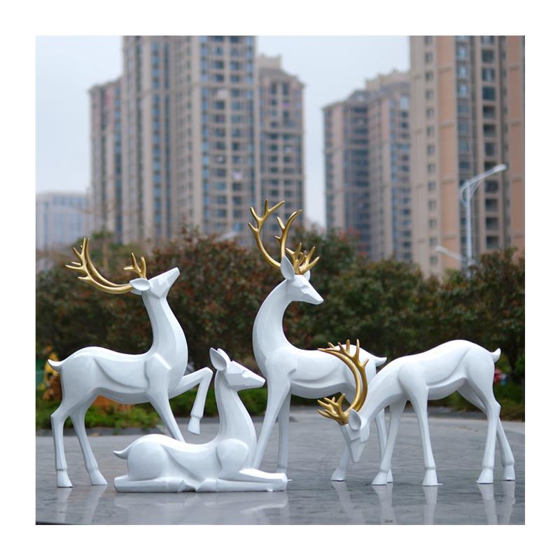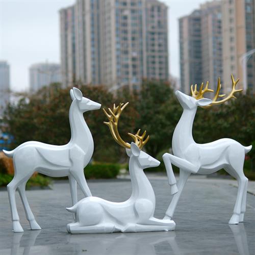 抽象几何梅花白鹿玻璃钢雕塑户外花园林景观小区草坪动物装饰摆件