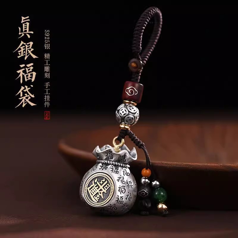 925银日进斗金汽车钥匙扣挂件男女士款创意礼品编织福袋挂饰礼物