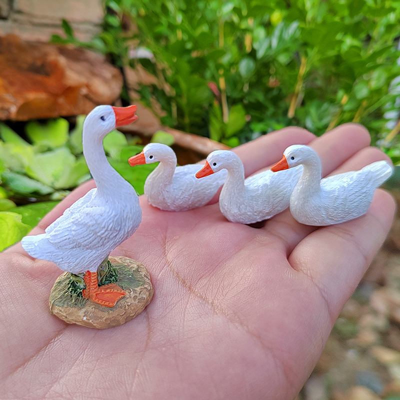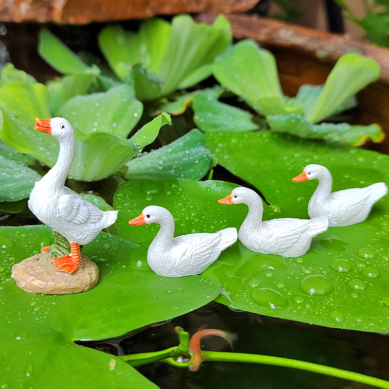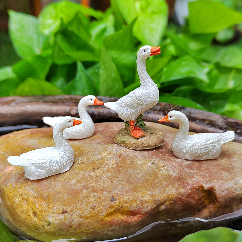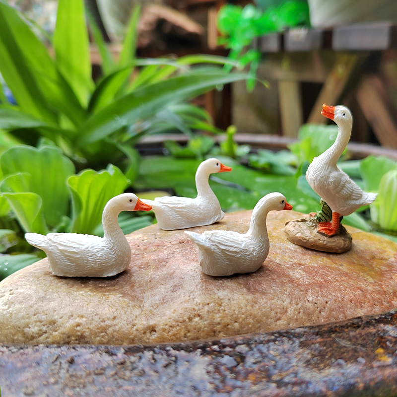 迷你小白鸭子动物摆件花园庭院假山小水池阳台盆景盆栽造景装饰品