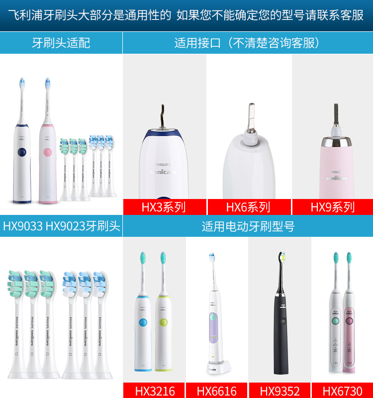 飞利浦电动声波牙刷头HX9023 HX9033适用HX6730/hx9332/3216/6511