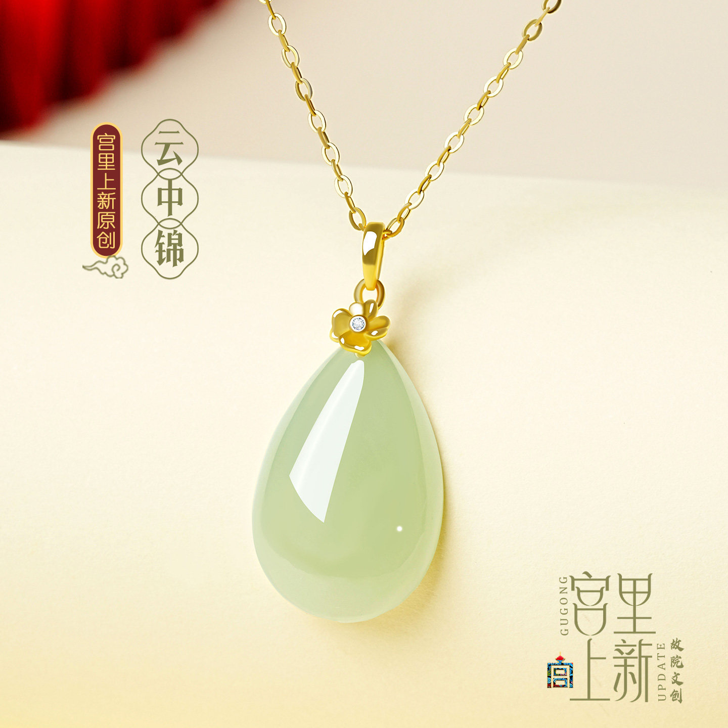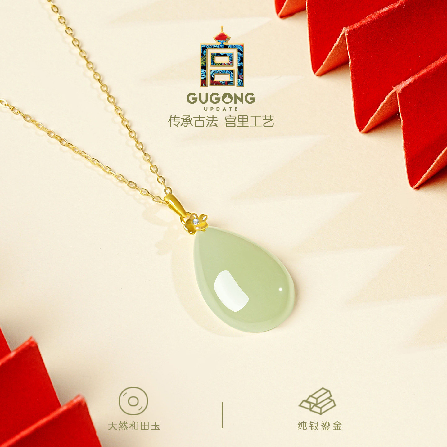 宫里上新和田玉吊坠女纯银玉石项链水滴玉坠新中式生日礼物送妈妈