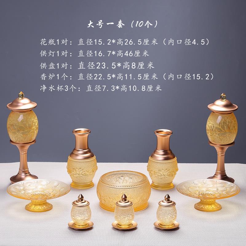 琉璃莲花佛具摆件供具套装佛堂供奉净水杯香炉花瓶供灯佛前摆放