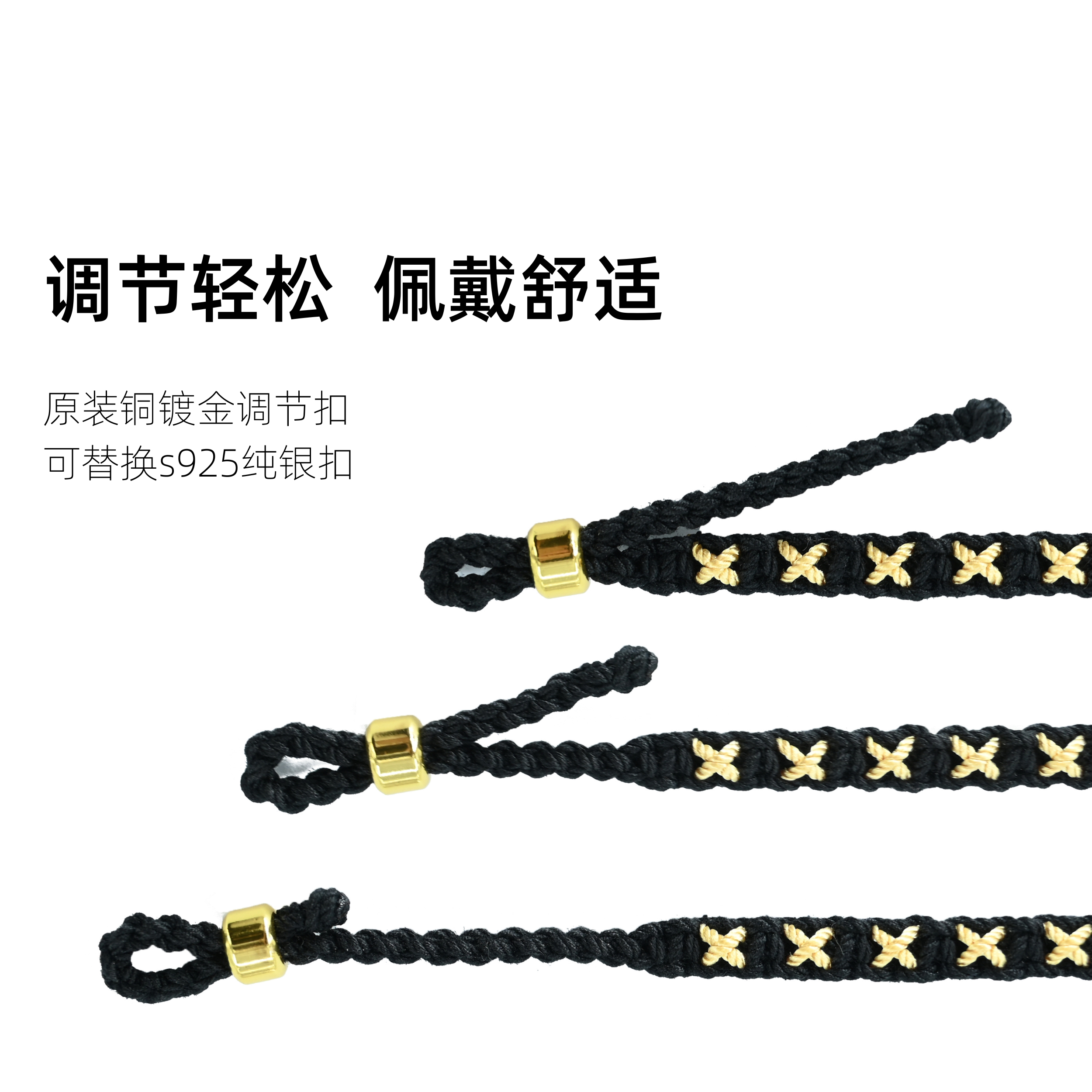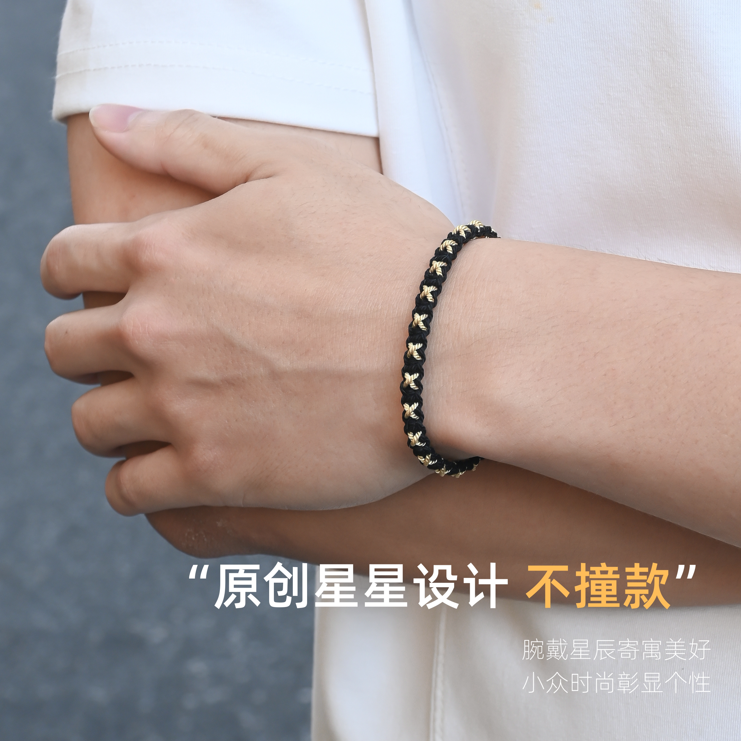 星星手绳男士纯手工编织黑色手链可调节配轻奢高级感情侣礼物黑金