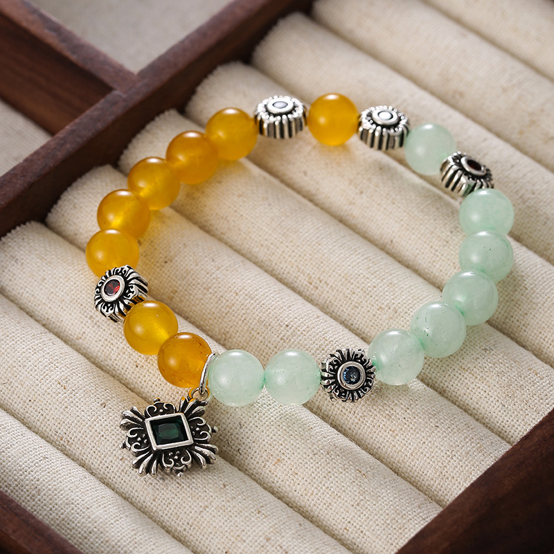 法蒂玛之手恶魔之眼手链香薰可滴精油五行手串黑曜石玛瑙黄玉