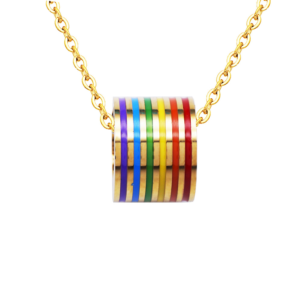 跨境出口饰品外贸热销彩虹项链滴油滚轮钛钢潮男女吊坠挂件