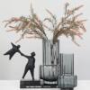 现代简约烟灰色透明玻璃花插花花器艾3599草叶桌仿真客厅餐装饰摆
