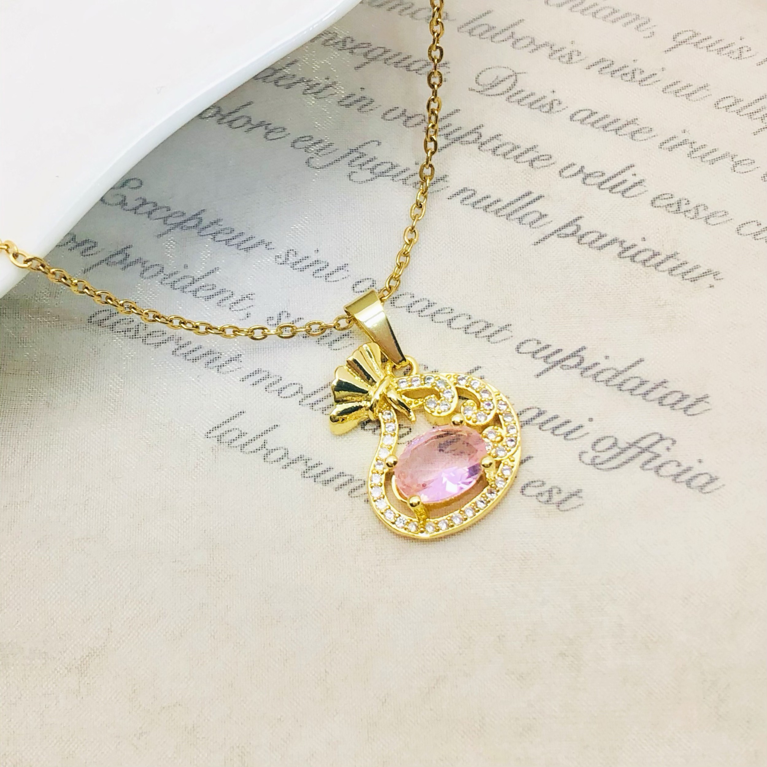 新款钛钢不掉色钱袋锆石锁骨链潮百搭时尚简约质感个性气质女项链