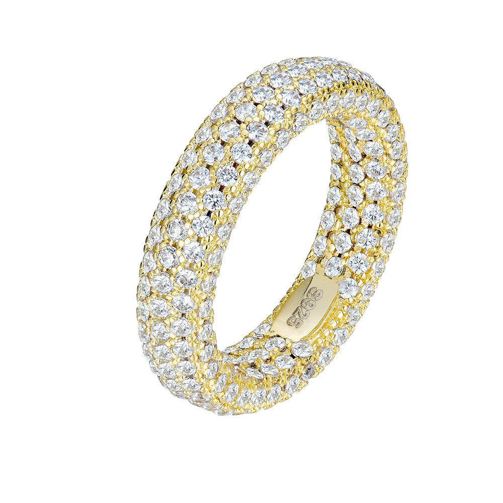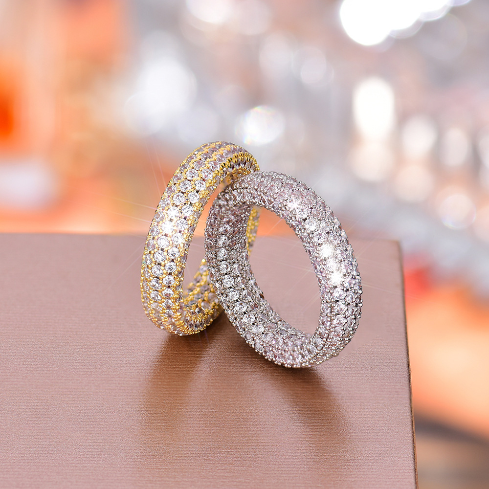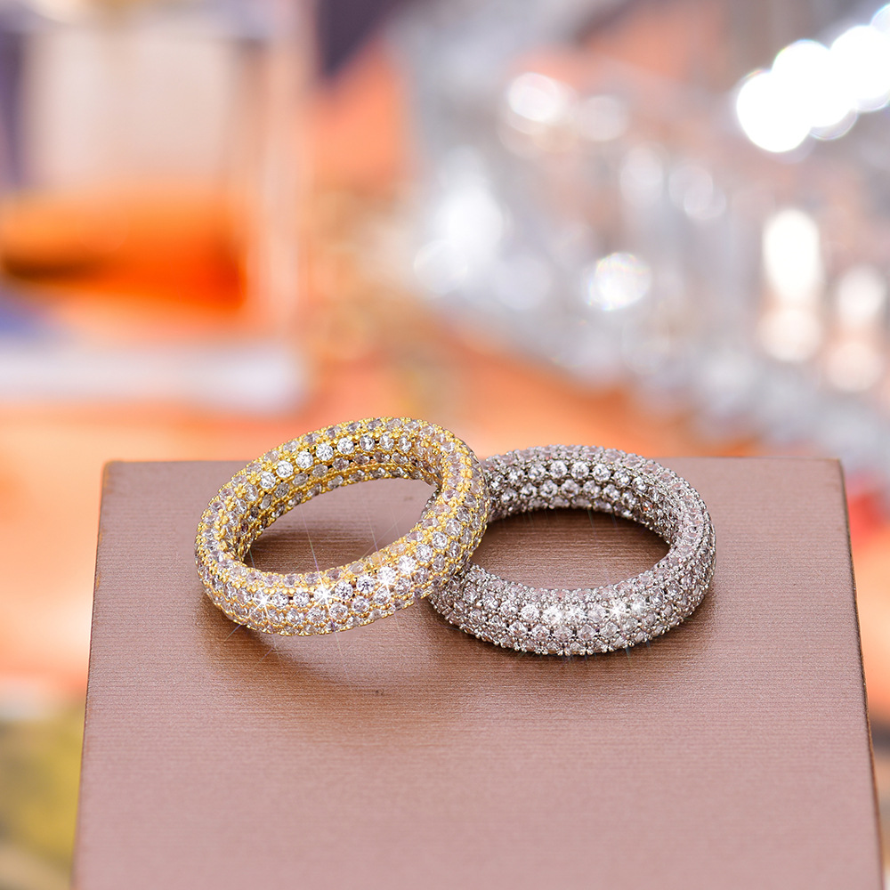 欧美满钻S925银精工镶嵌复古风vintage高颜值莫桑钻高级纯银戒指