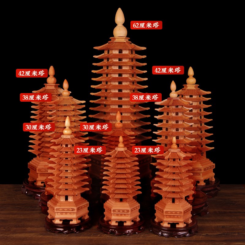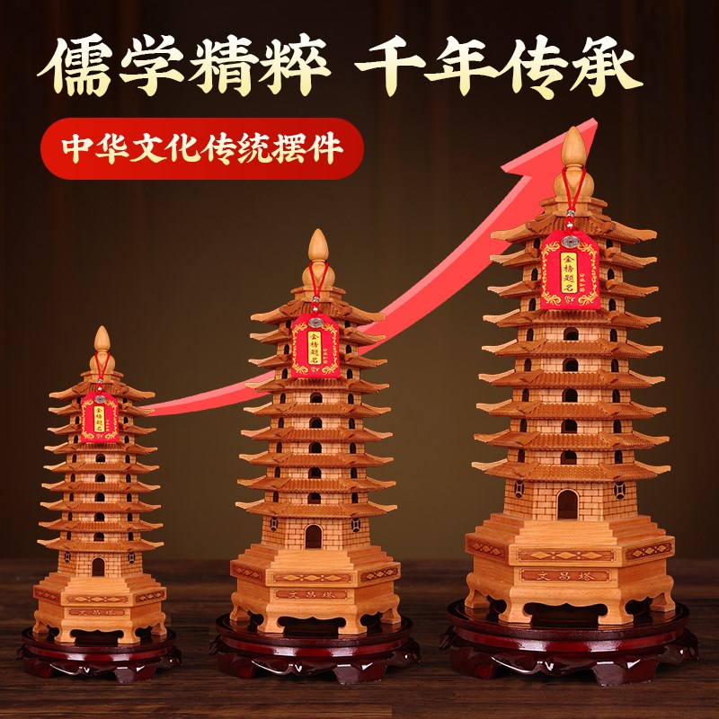 文昌塔木质桃木摆件 学生用书房书桌办公室摆件七W层九层十三层