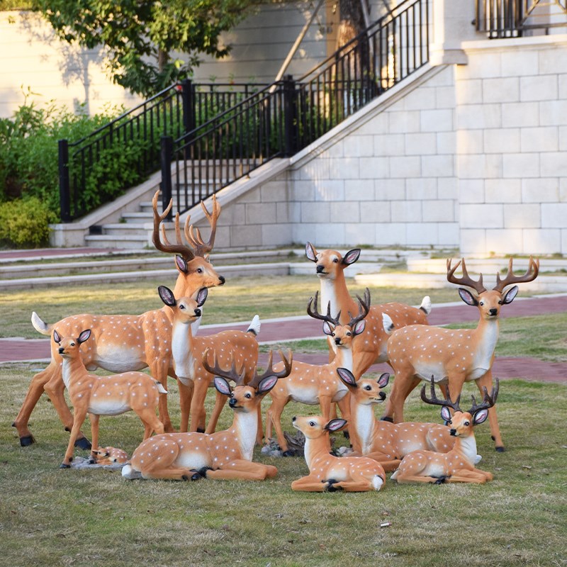 户外园林景观造景大型梅花鹿玻璃钢雕塑仿真O动物花园装饰摆件小