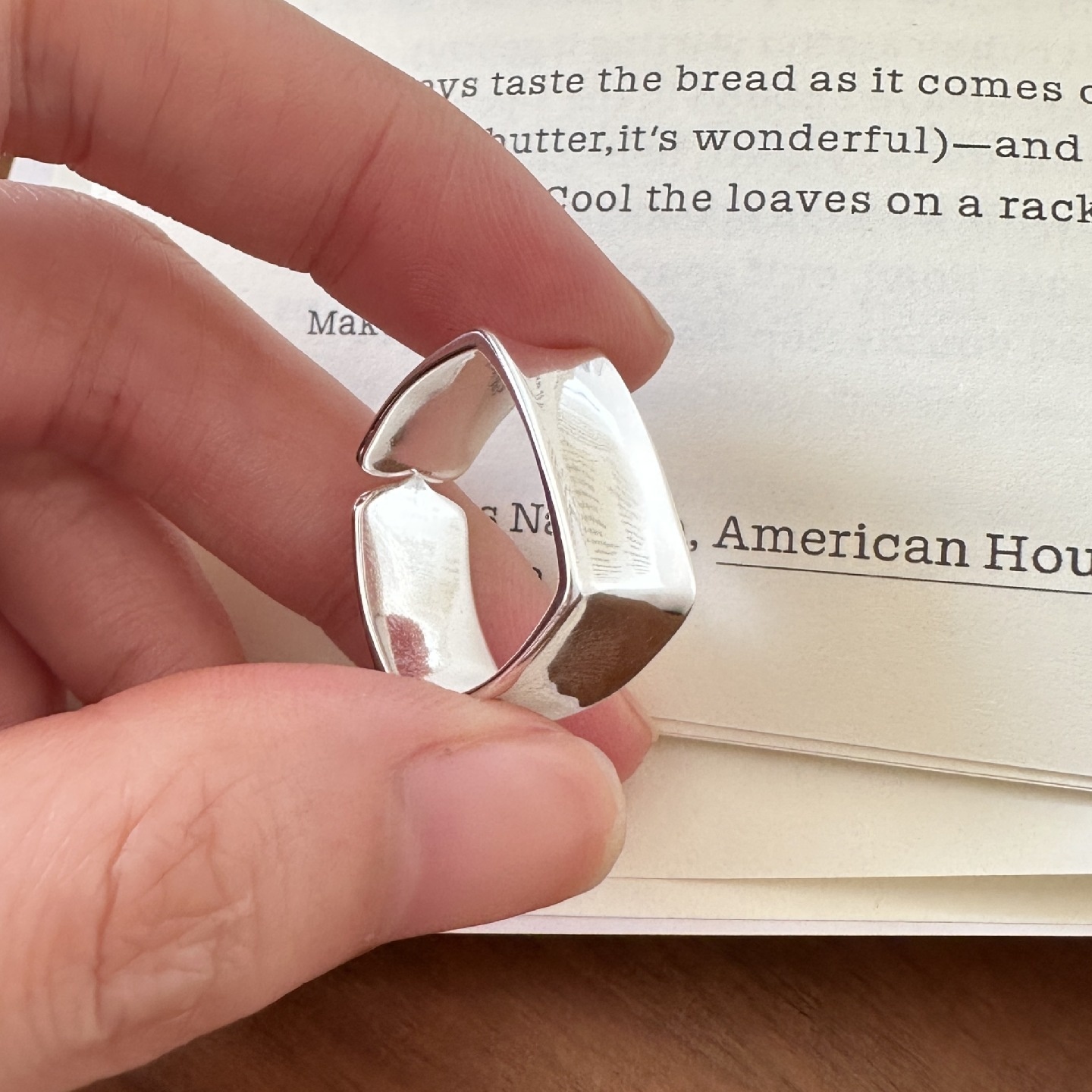 美汝仙 纯银宽面方形戒指女韩版简约风气质小众设计开口指环轻奢