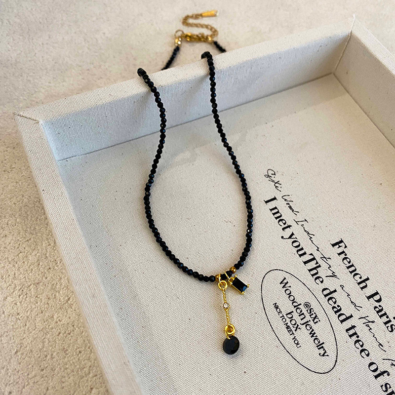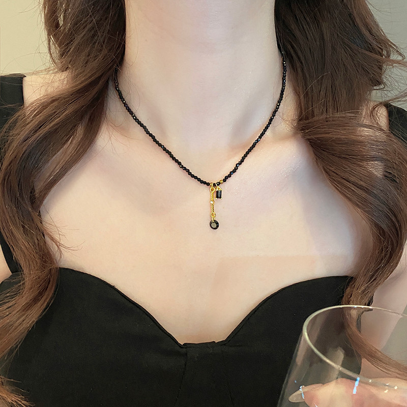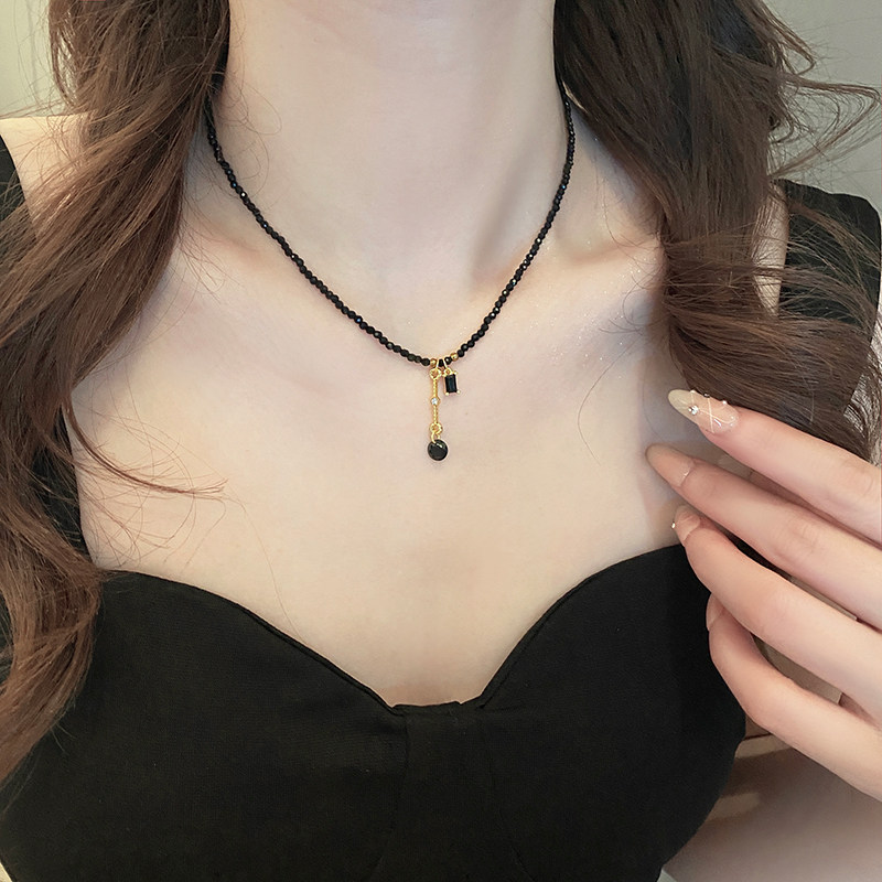 黑色水晶锆石项链女高级感小众设计短款锁骨链2025新款轻奢配饰