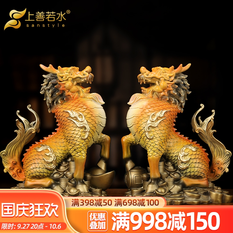 《财富麒麟》铜麒麟摆件一对家居客厅招财装饰店铺办公室开业礼品