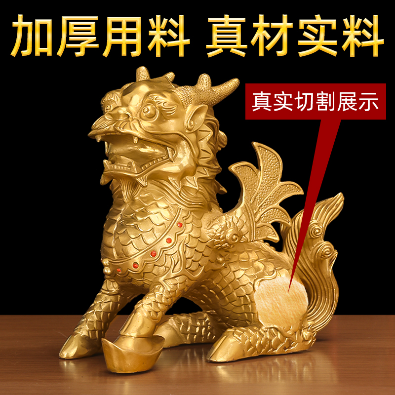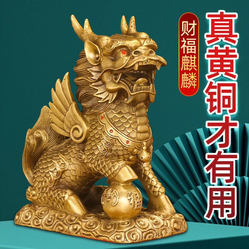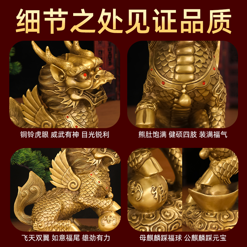 铜麒麟摆件一对纯黄铜招财镇宅全铜质八卦公母客厅玄关入户门装饰