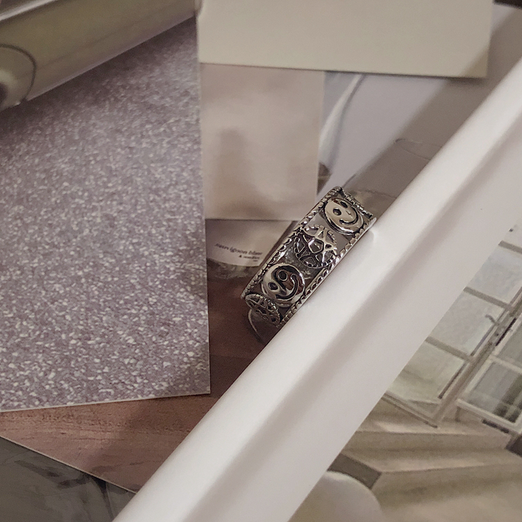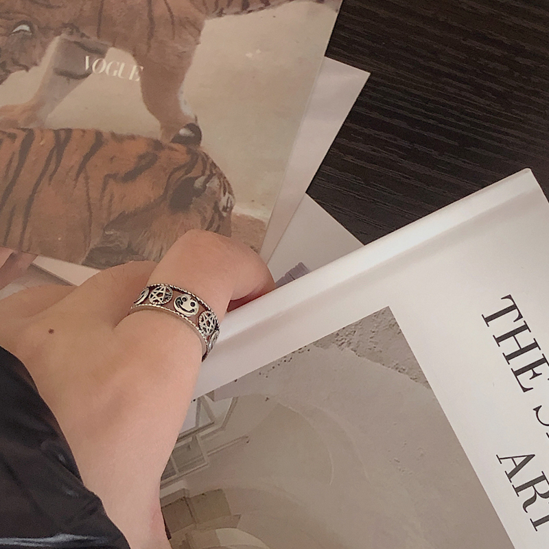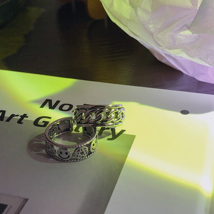 ins风潮流镂空五角星戒指男女个性笑脸半开口戒指韩版情侣可调节