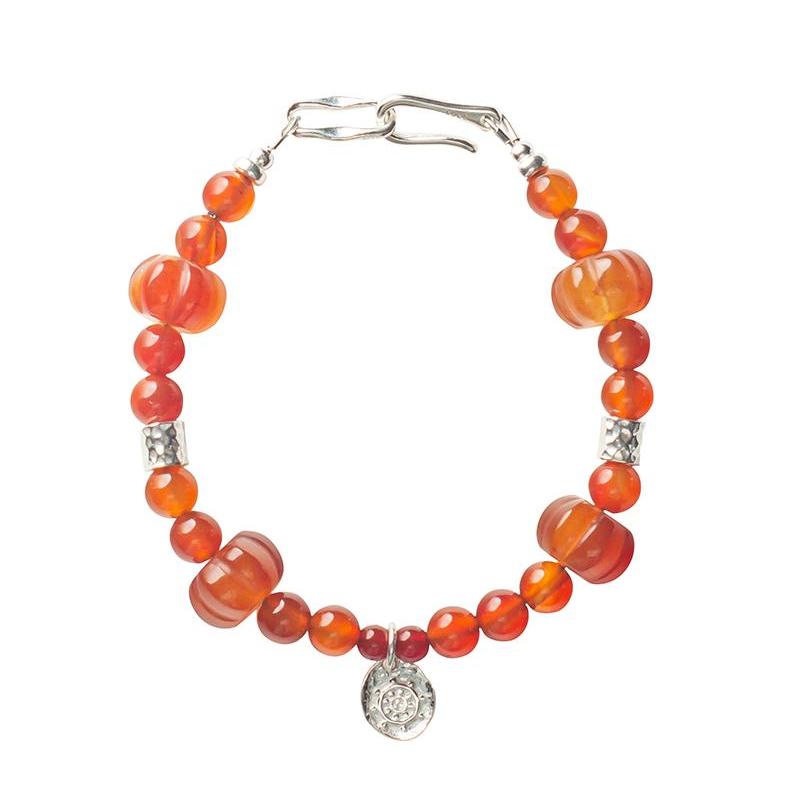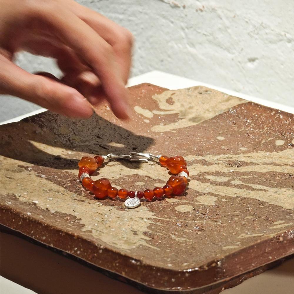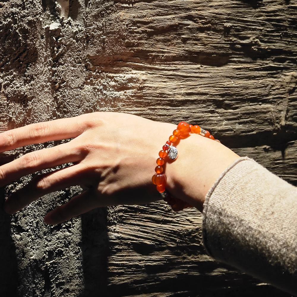 心想事橙。天然橙红玛瑙手工纯银手链秋冬祝福好运首饰生日礼物女