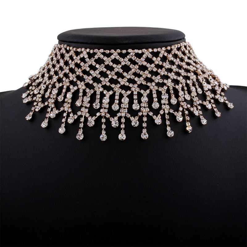 欧美轻奢水钻流苏颈链女高级感气质闪亮新娘婚纱配饰项链脖子饰品