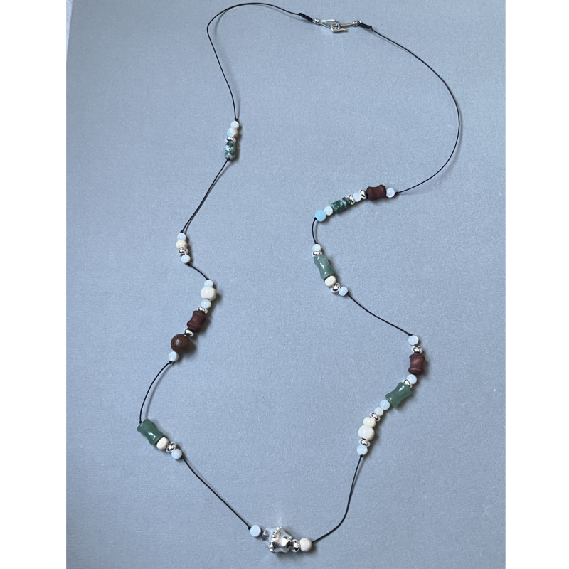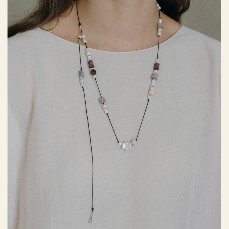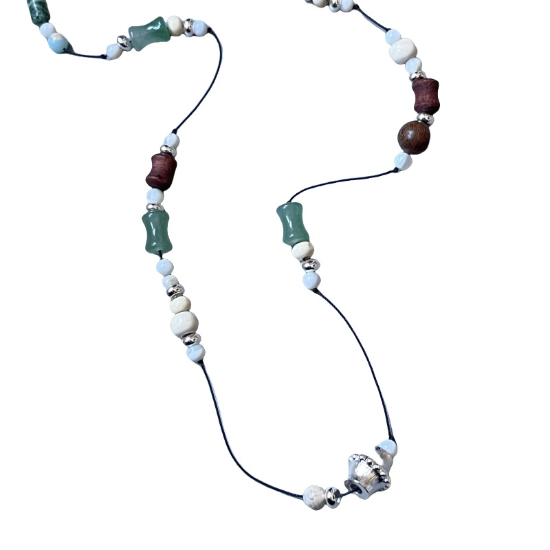 云松木柱串珠项链ins小众设计轻奢精致多种戴法长腰链毛衣链