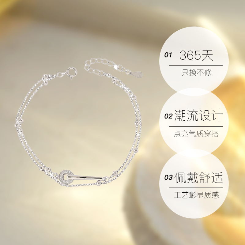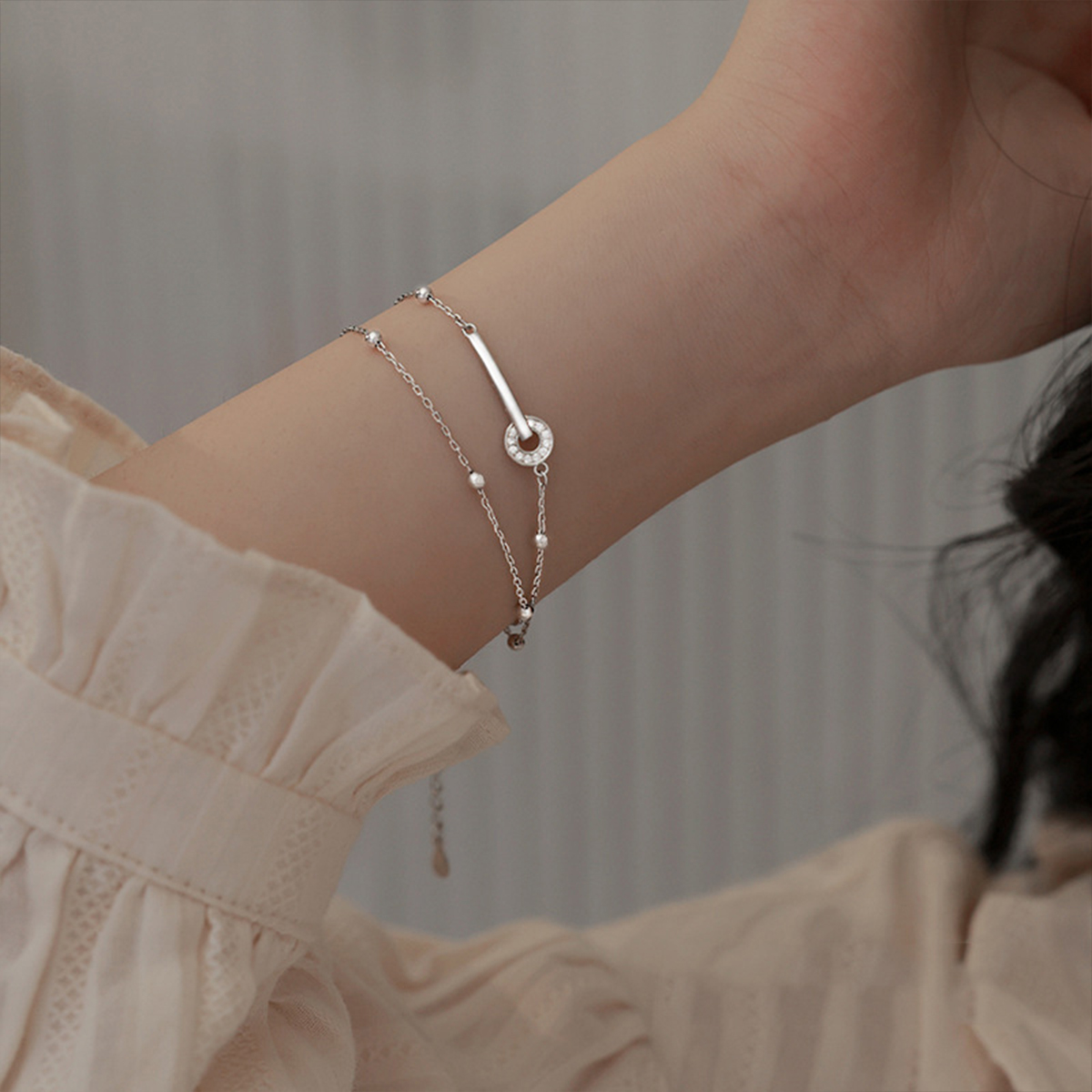 【自营】daisy beauty双层圆环手链女S925银手链礼物纯银女生银饰