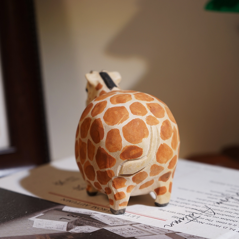 圆滚滚的长颈鹿手工木雕小摆件可爱卡通趣味创意书柜桌面装饰品