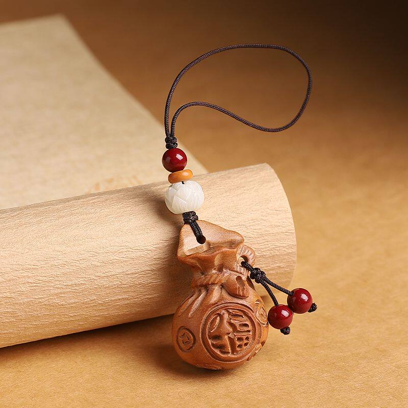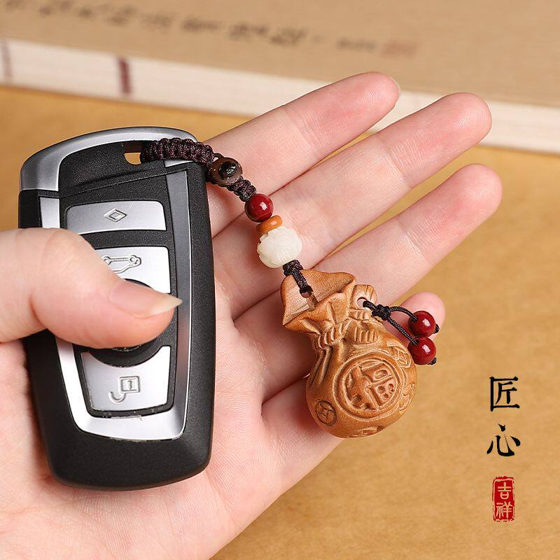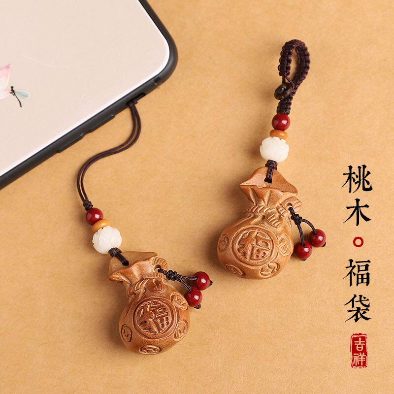 桃木福钱袋汽车钥匙扣挂件男女马年钱钥匙链坠书包挂饰手机链挂绳