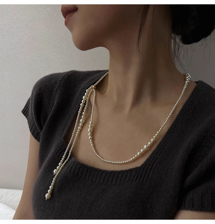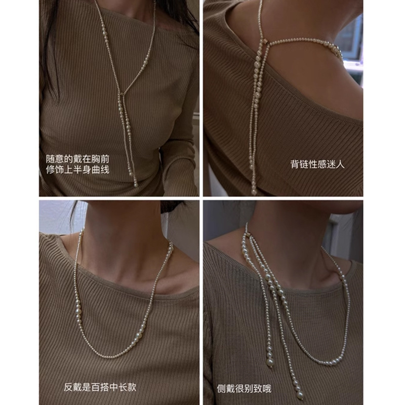 秋冬新款强光渐变设计感珍珠毛衣链施家长款项链女百搭高级感饰品
