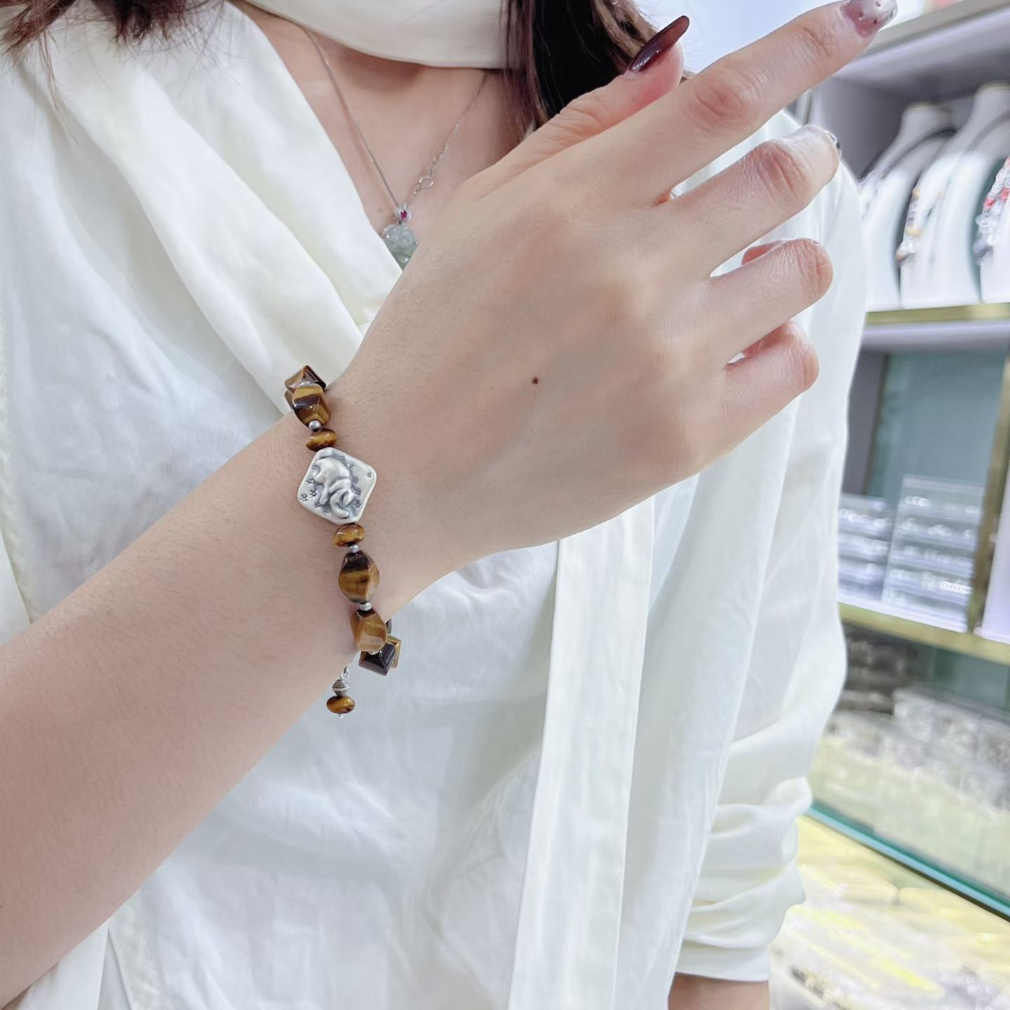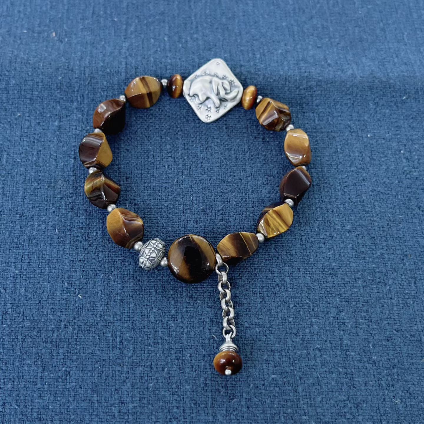 复古风清迈泰银大象虎眼石手链不规则男女个性串珠手串首饰礼物