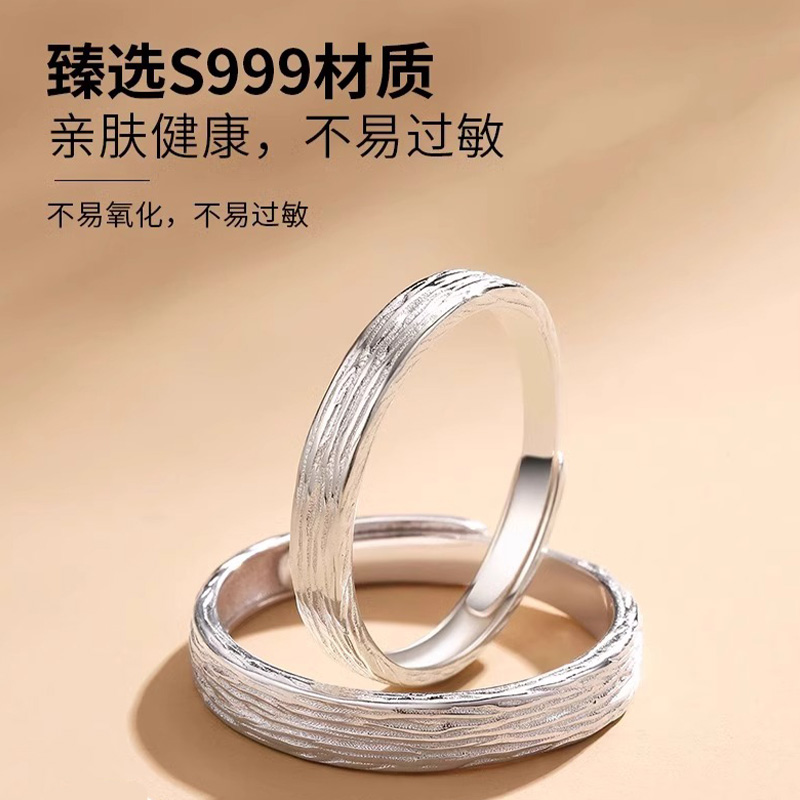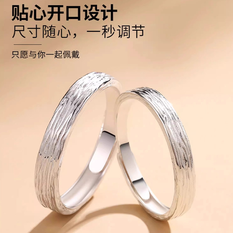 vana岁月印记情侣戒指男女款纯银一对开口可调节戒指情人节礼物