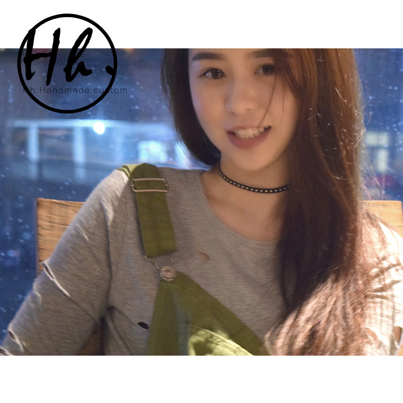 【Hh】项链女 锁骨链 日韩颈带朋克铆钉 项圈 原宿复古饰品手工