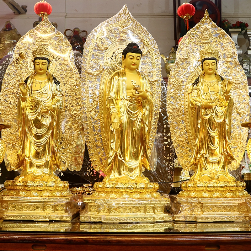 西方三圣铜像台湾纯铜贴金佛像阿弥陀佛观世音菩萨大势至三圣大号