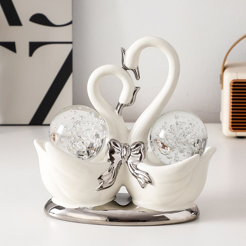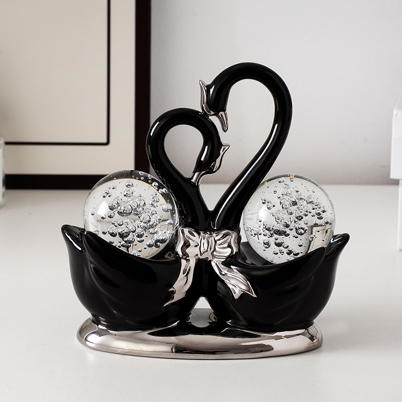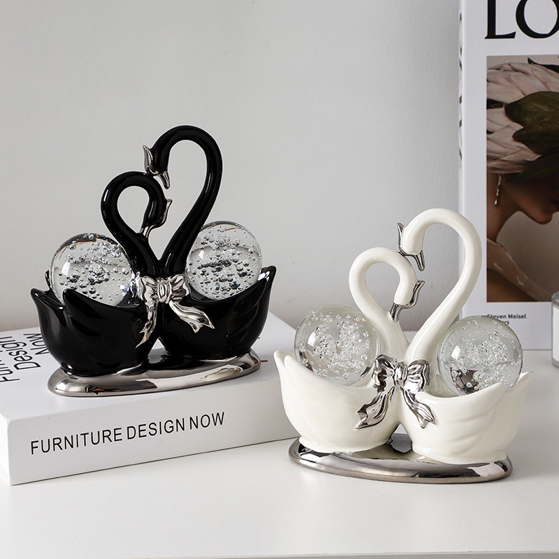 水晶球情侣黑天鹅摆件一对现代轻奢家居玄关客厅酒柜电视柜装饰品