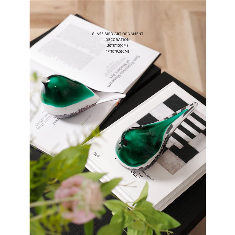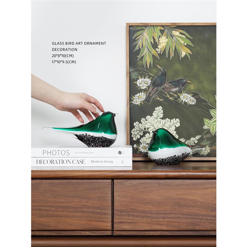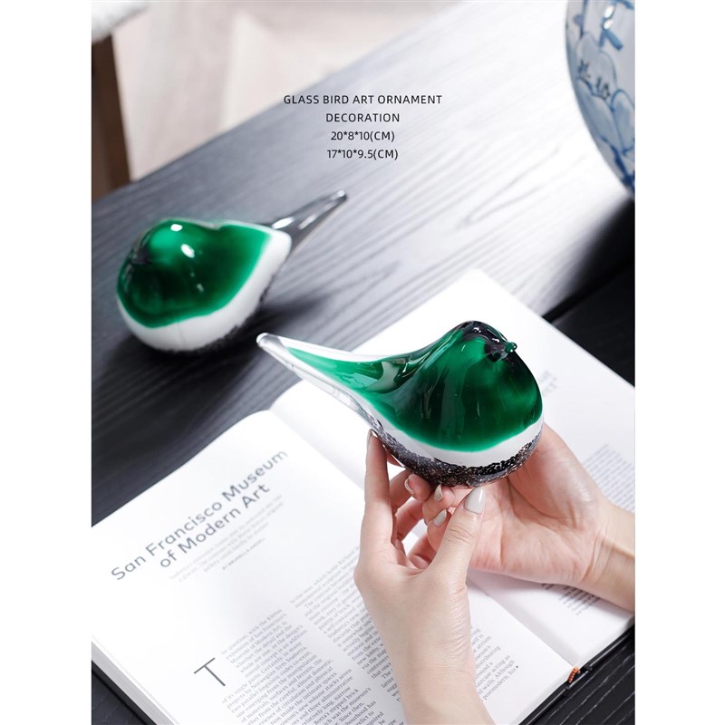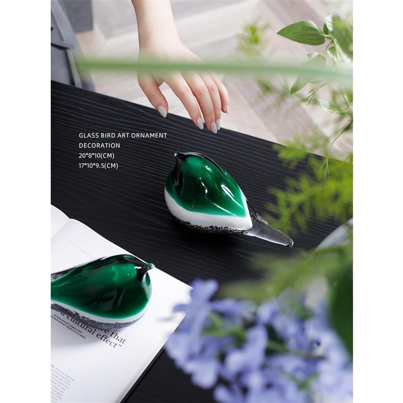迷屿家居报喜翠鸟人工吹制琉璃镇纸文K房藏品乔迁礼物玄关摆