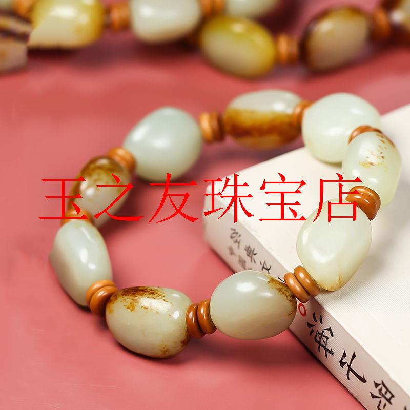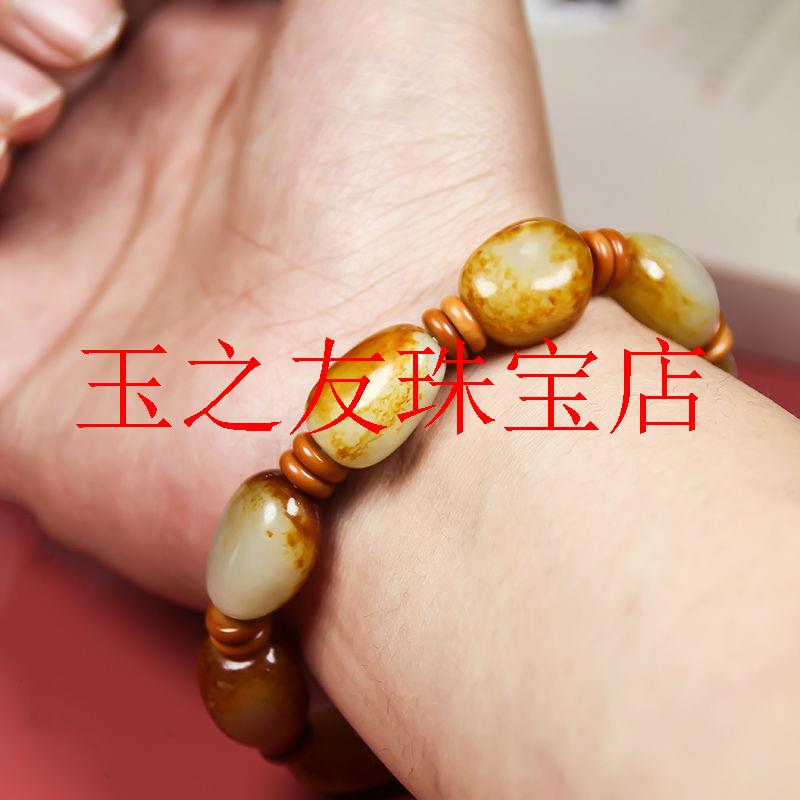 新疆和田玉佛头手串男款原石红沁皮男女款籽料民族风红皮随形手链