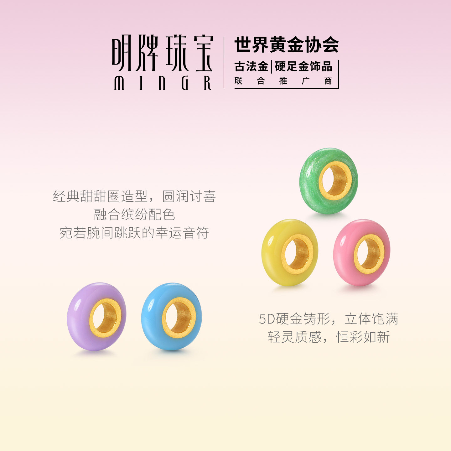 明牌珠宝彩虹甜甜圈硬金转运珠 黄金彩虹串珠足金情侣手串AFP1440