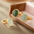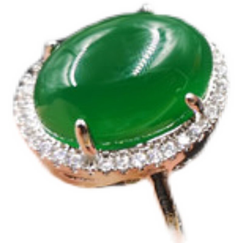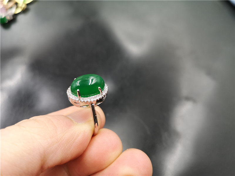 四海玉器 镶嵌绿玛瑙蛋形戒指 活扣可伸缩绿色玉髓戒指 指环