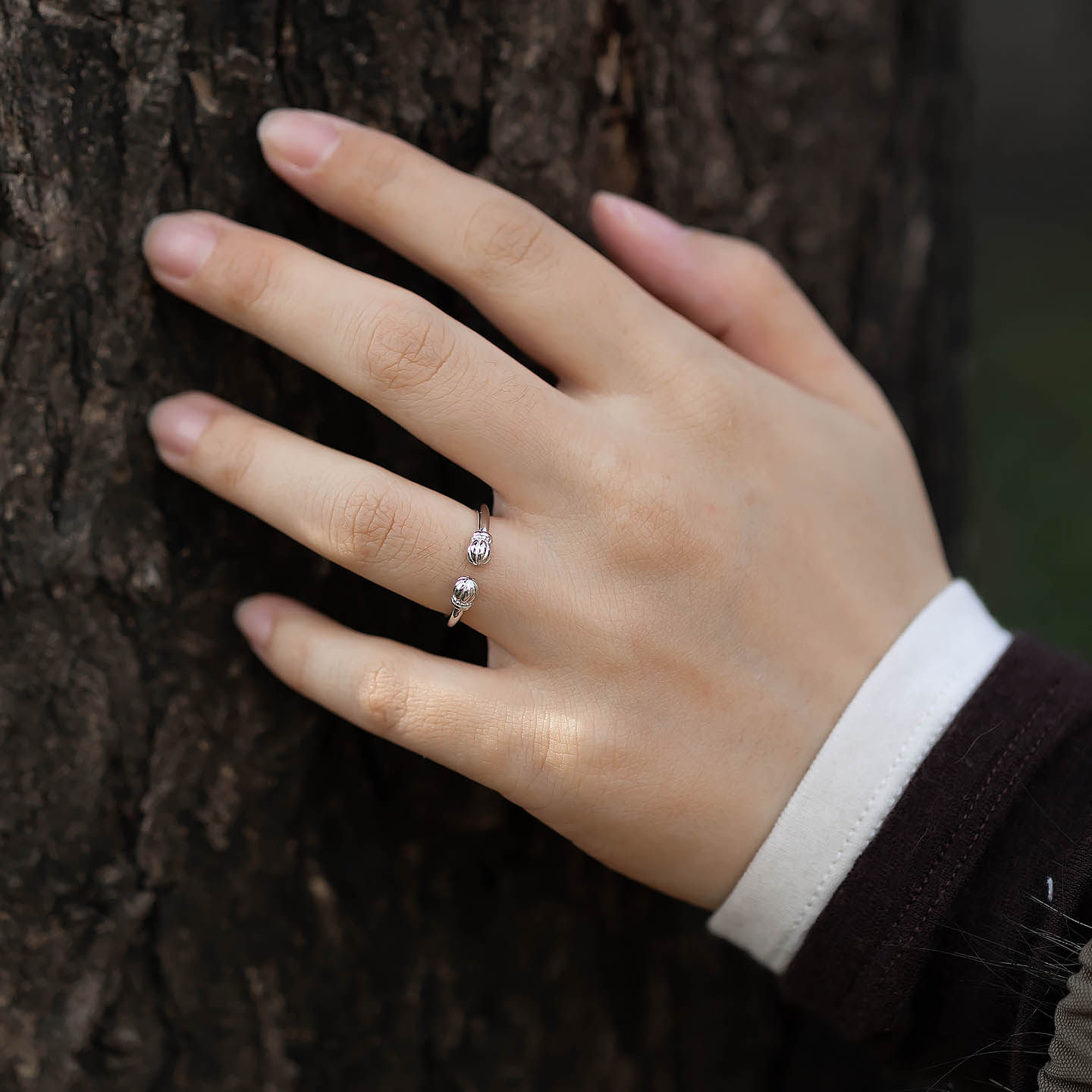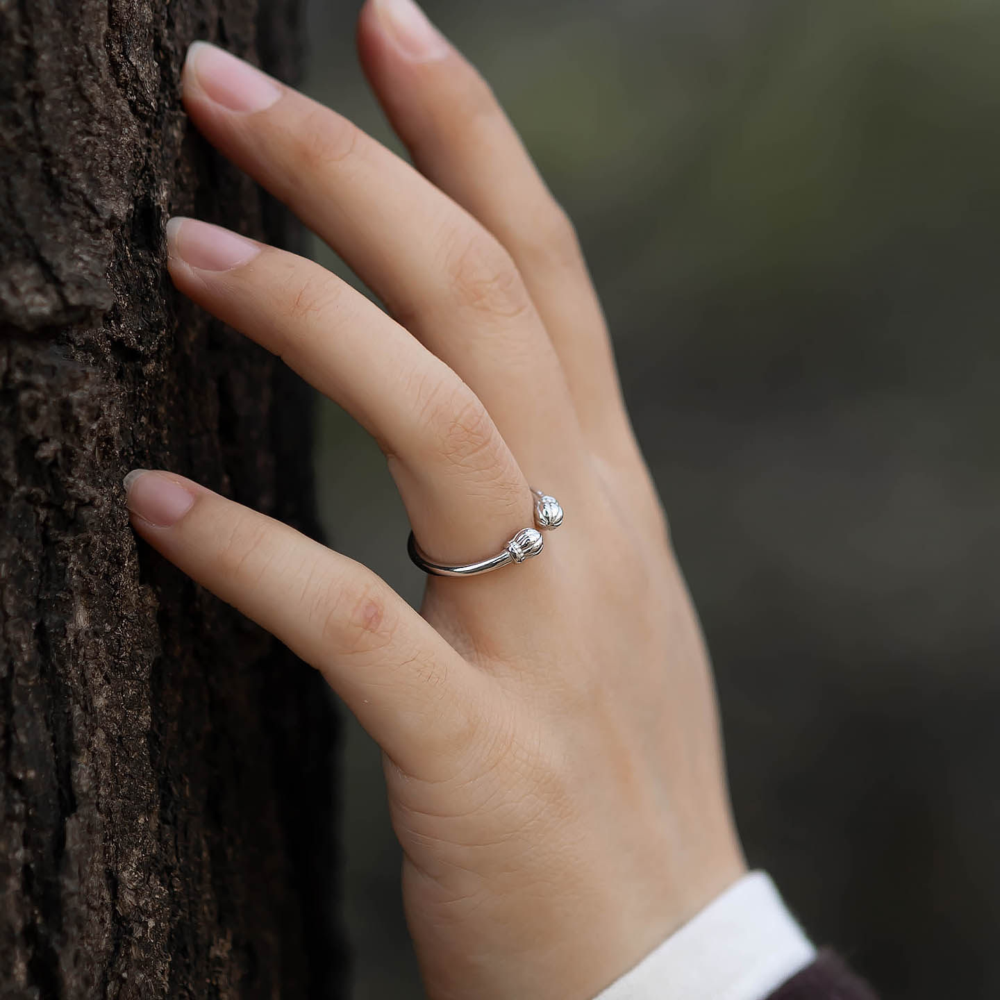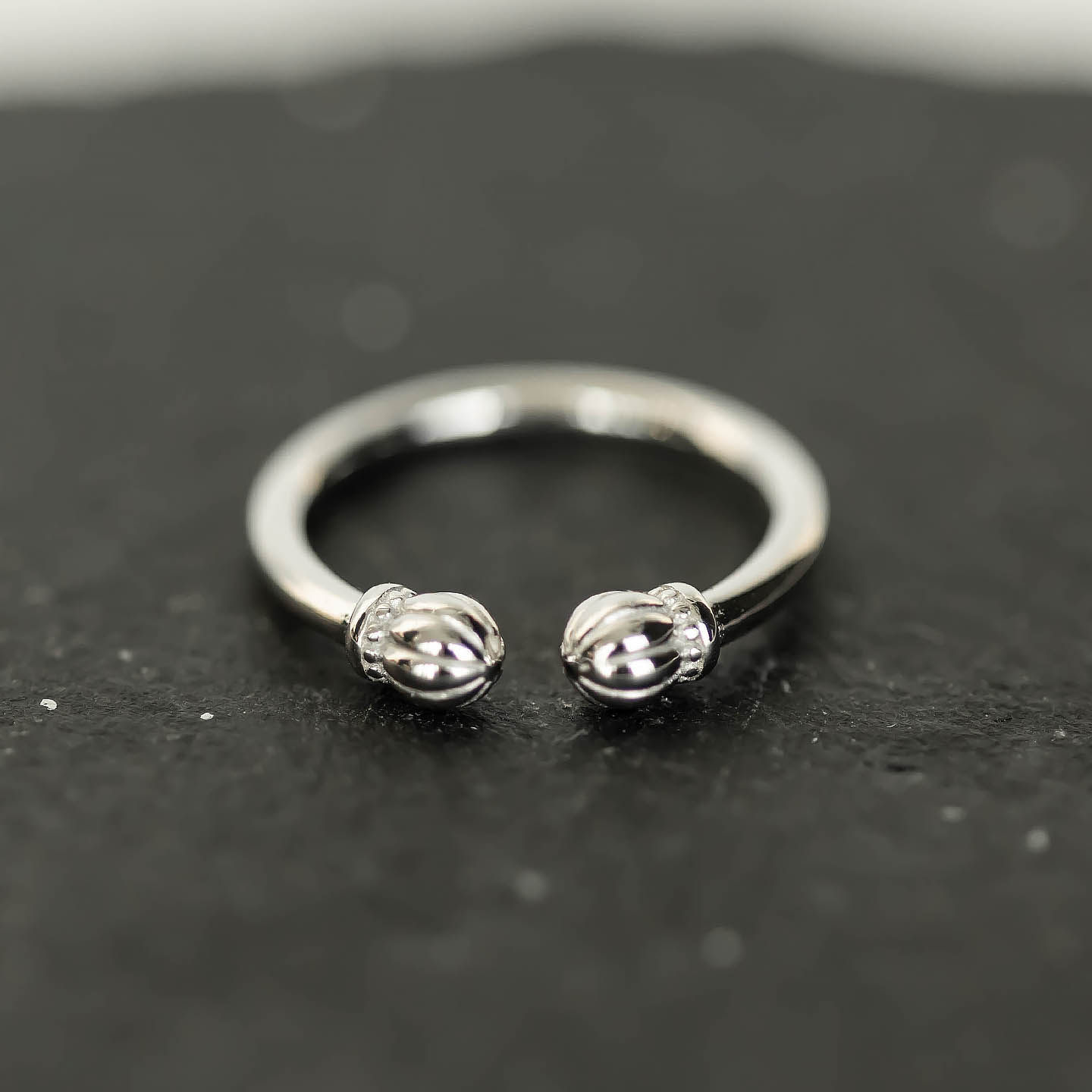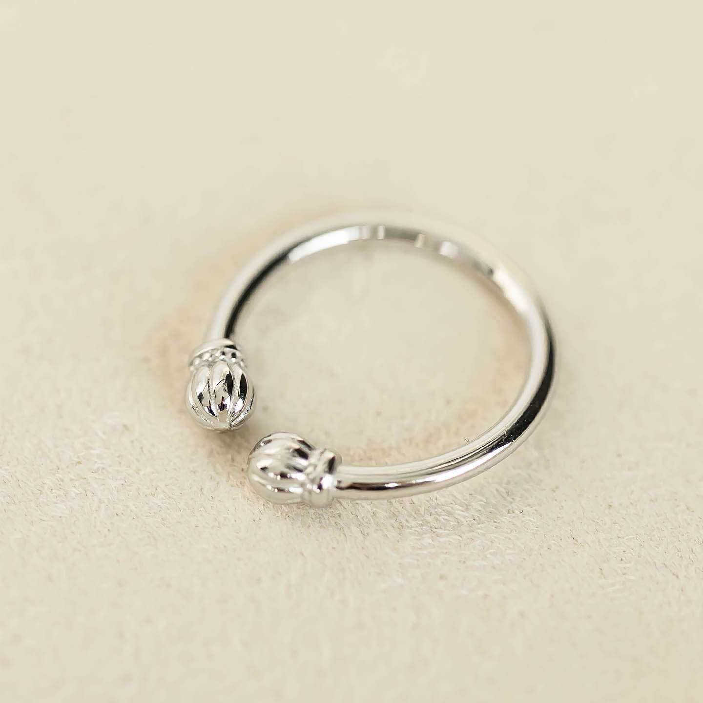 拾得 纯银925复古南瓜头光面开口调节戒指莲花头新中式国风礼物