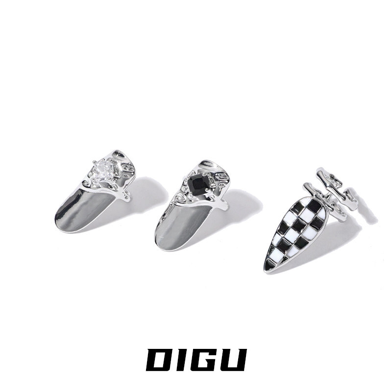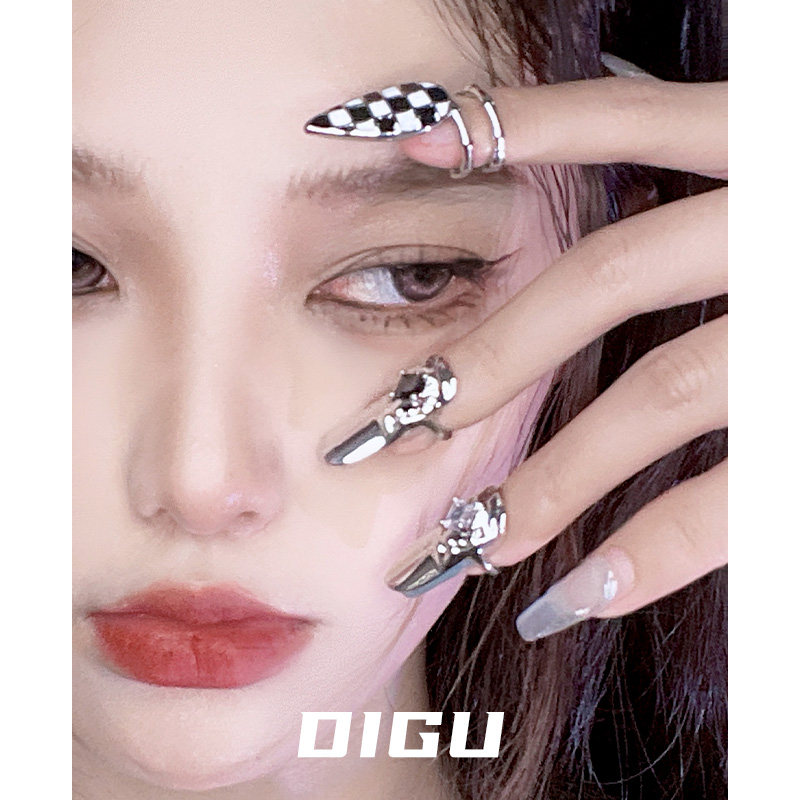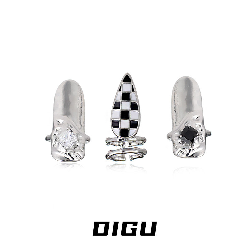 DIGU嘀咕家棋盘格穿戴指甲戒指开口可调节网红高级感小众设计个性