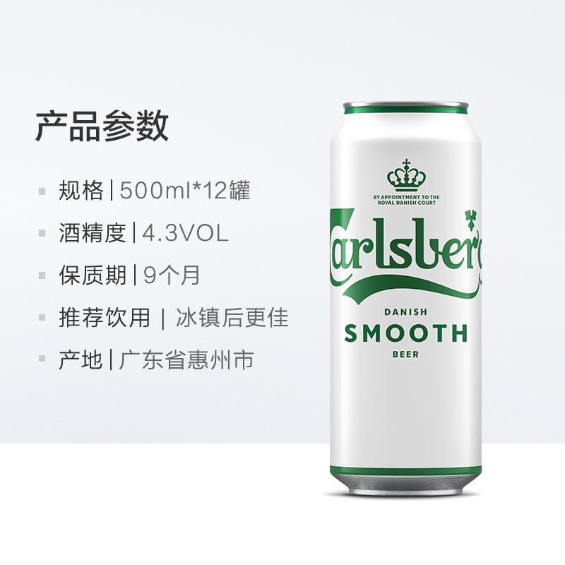 嘉士伯啤酒醇滑啤酒500ml*12罐丹麦经典皮尔森拉格啤酒整箱