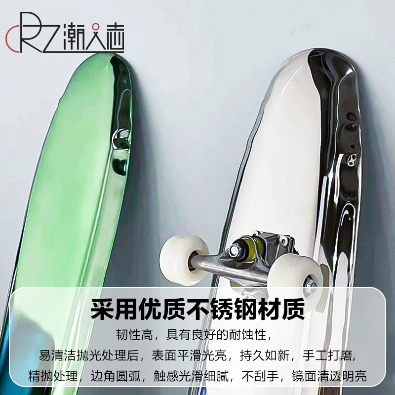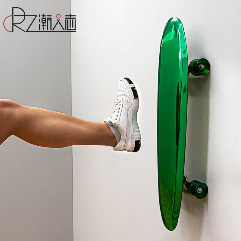 北欧设计师家具轻奢绿色落地不锈钢滑板车饰简约创意银色装饰摆件
