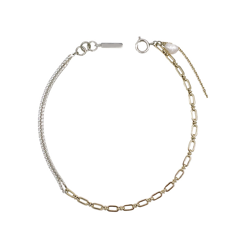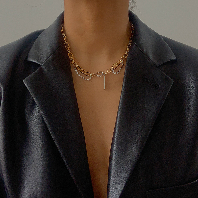 Wearring 锁骨链小众潮牌设计师金银双色镶钻金属拼接珍珠项链