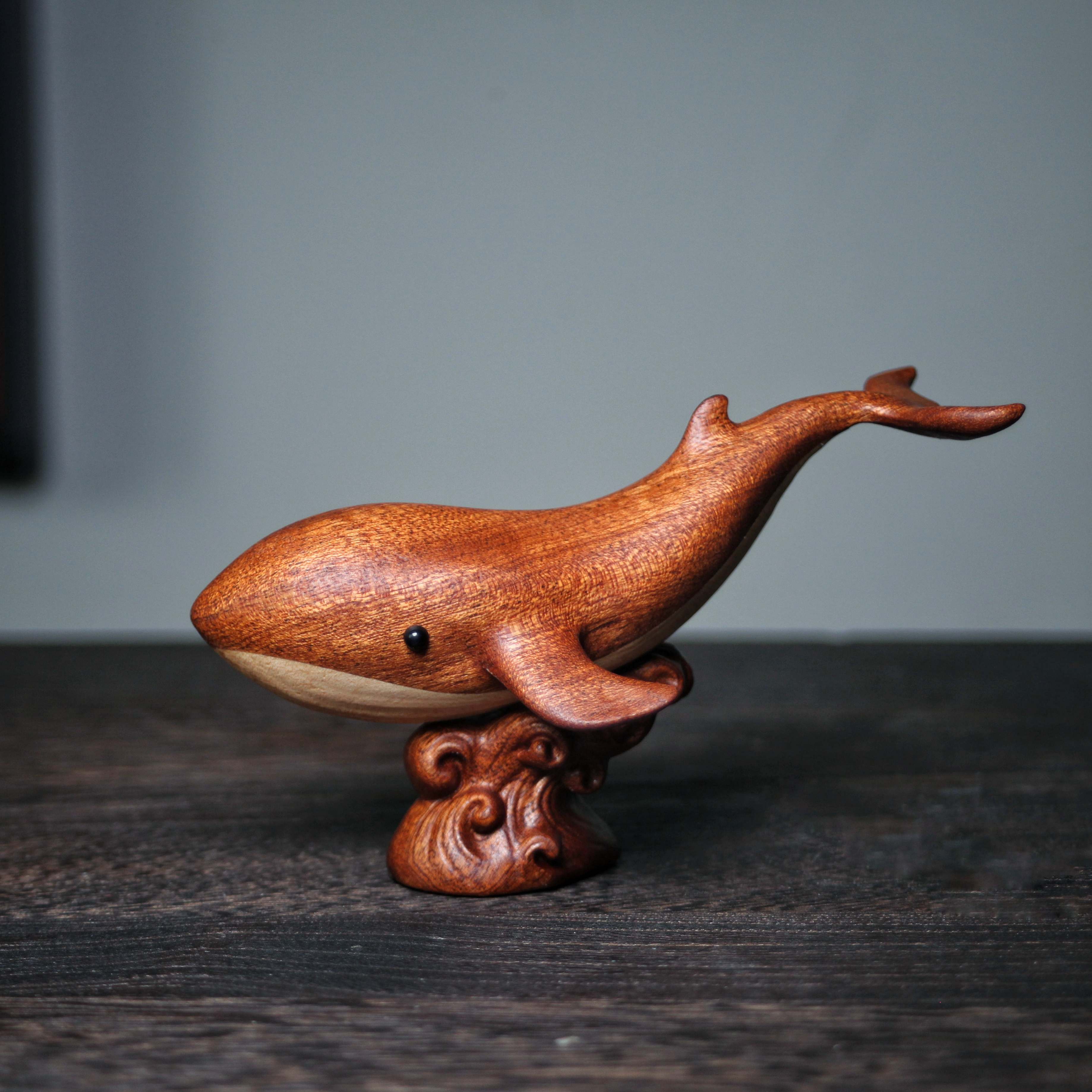 乌檀木磁吸白风木雕刻鲸鱼摆件实木雕刻家用办公桌面新款文玩摆件